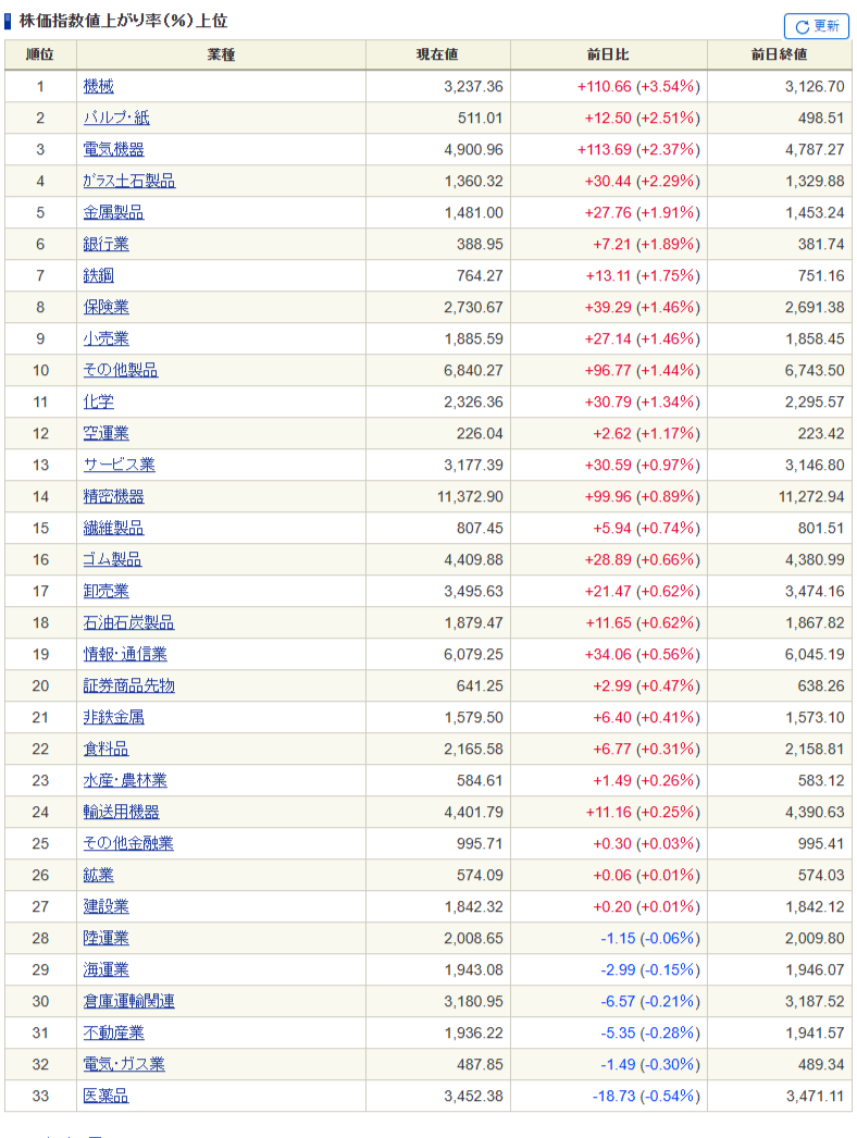・日中にかけ重工(IHI、川崎重工、三菱重工)中心に高値の展開…川崎重工は念願の9000円代突破。一方で半導体は弱い。ディスコは33,090円(終値)。もうそろで本当に2万円代行っちゃいそう。エヌビディアを筆頭にリスクオンの流れが来なければ半導体セクター上昇の展開は実現しにくいか・・・。